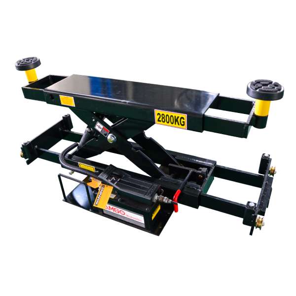The built-in auxiliary scissors platform is extendable to accomodate various wheelbases.