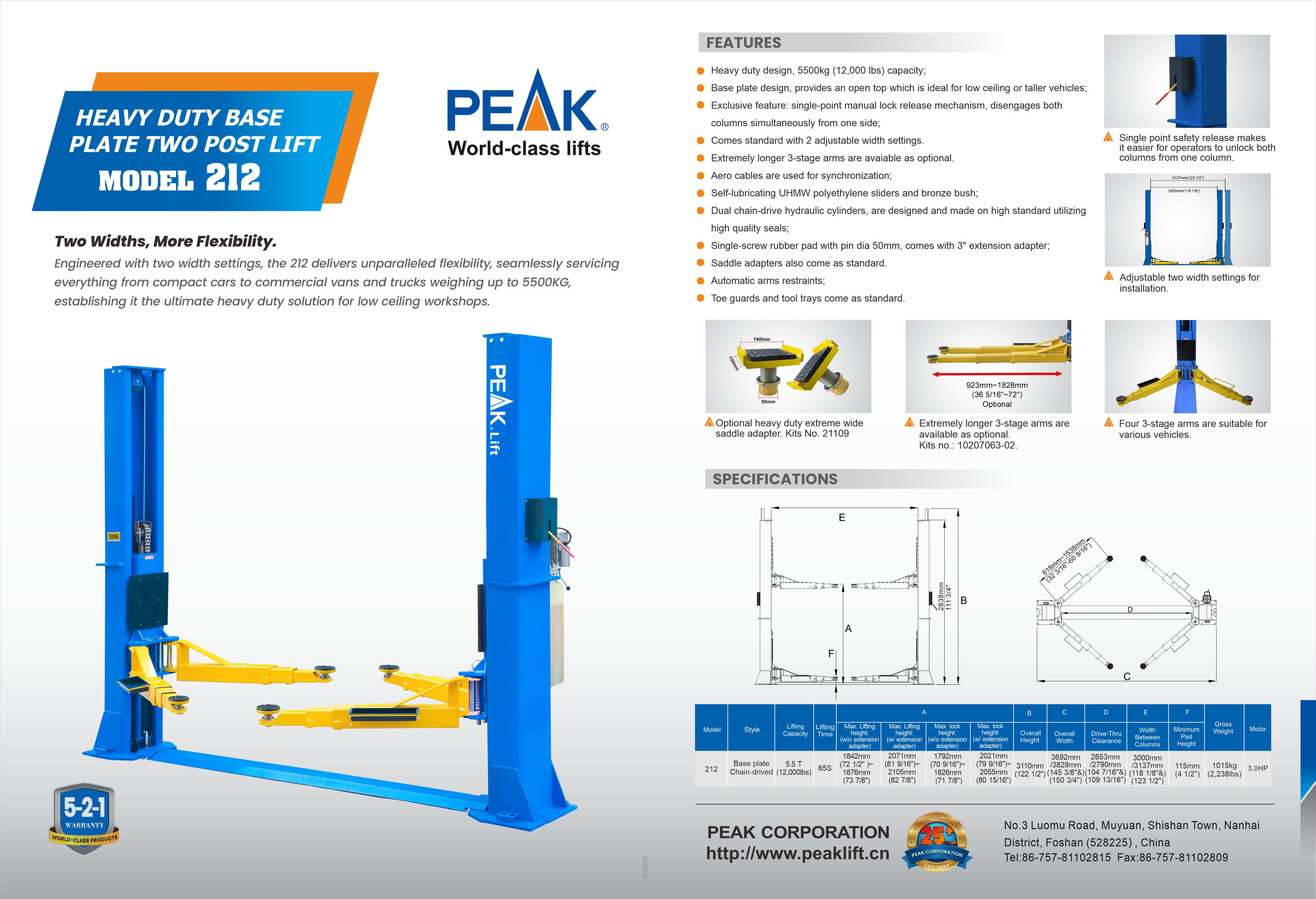 Engineered with two width settings, the 212 delivers unparalleled flexibility, seamlessly servicing everything from compact cars to commercial vans and trucks weighing up to 5500KG, establishing it the ultimate heavy duty solution for low ceiling workshops.