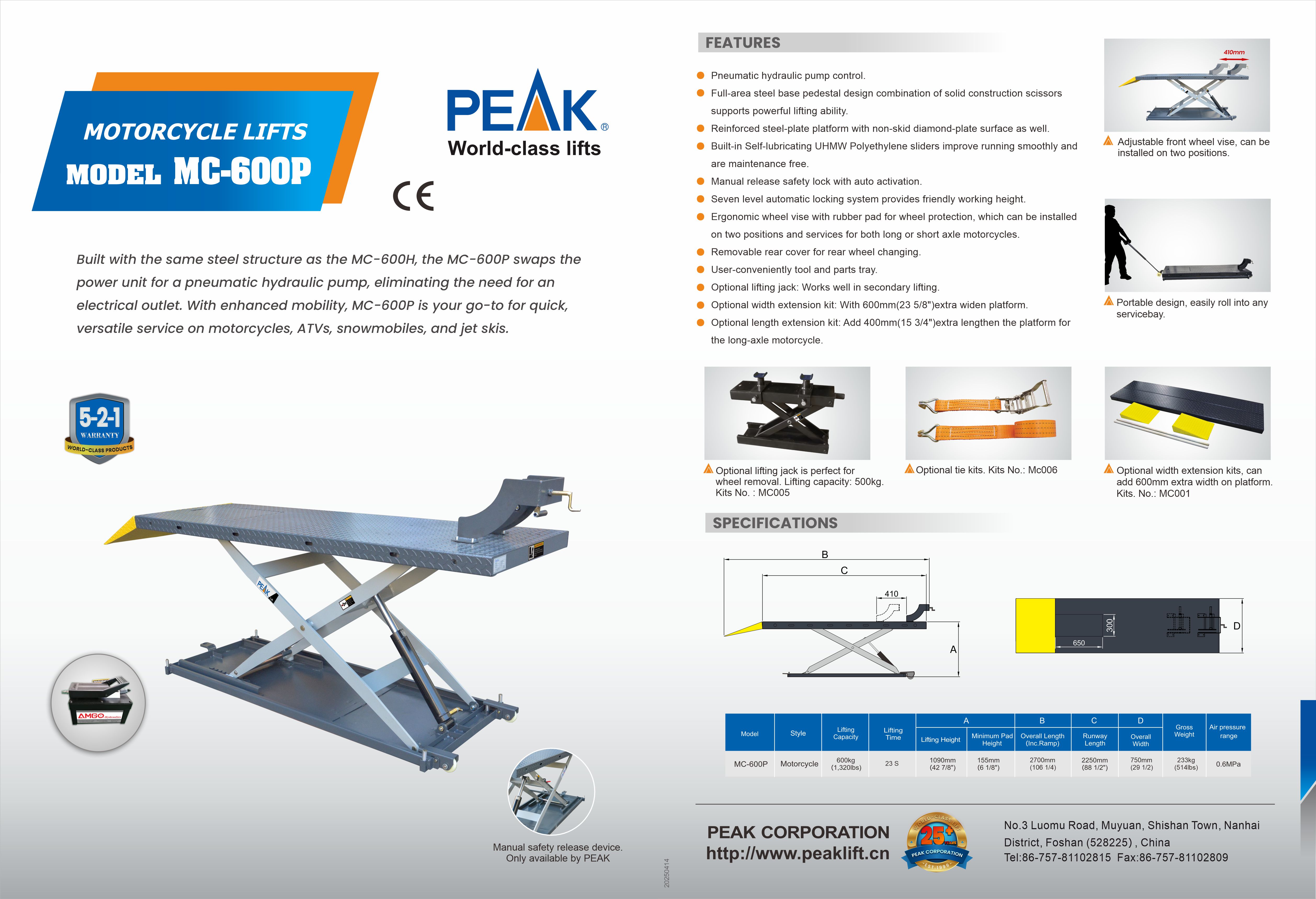 | Model MC-600P | Motorcycle Lifts | |