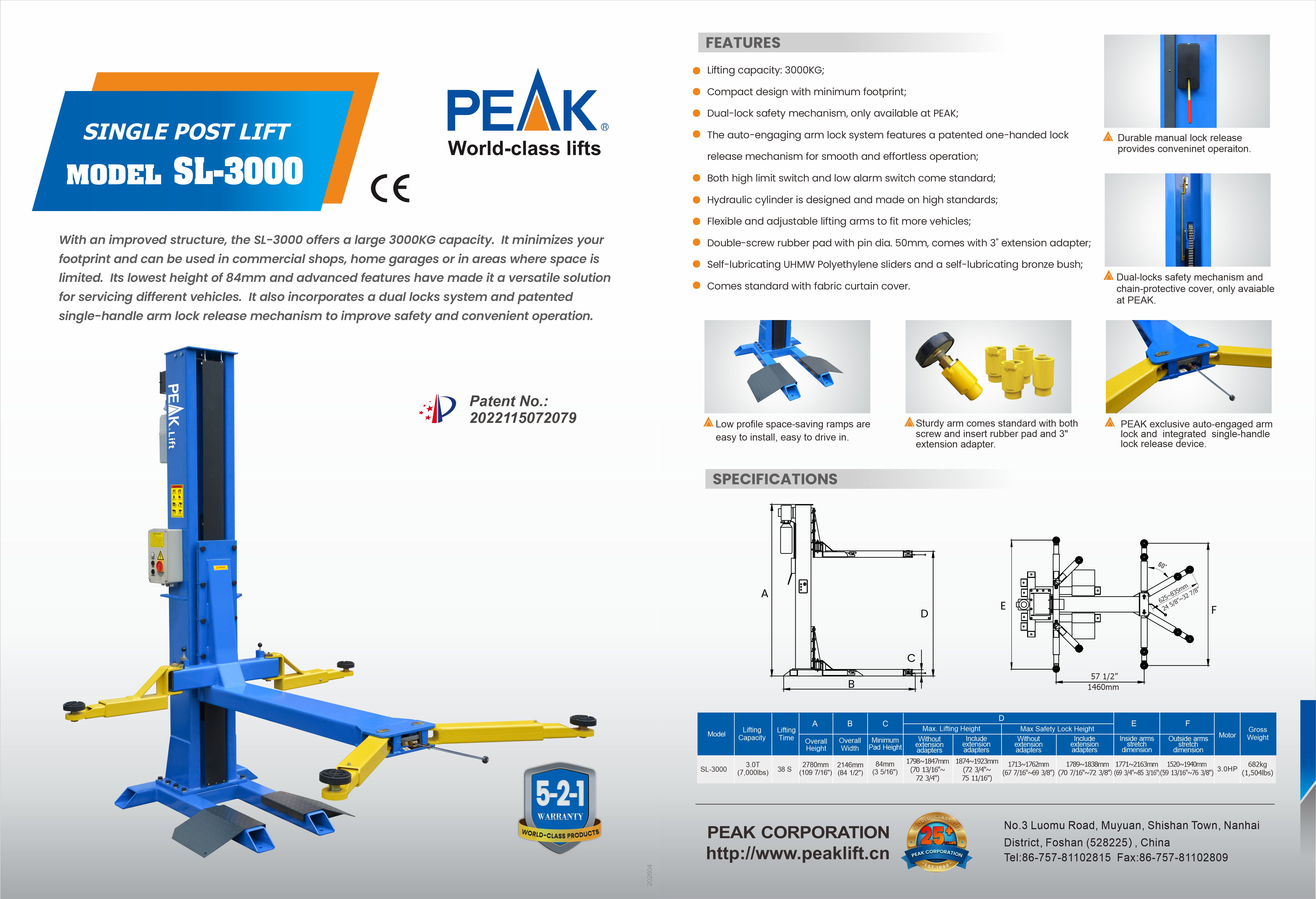 | Model SL-3000 | Single post lift | |