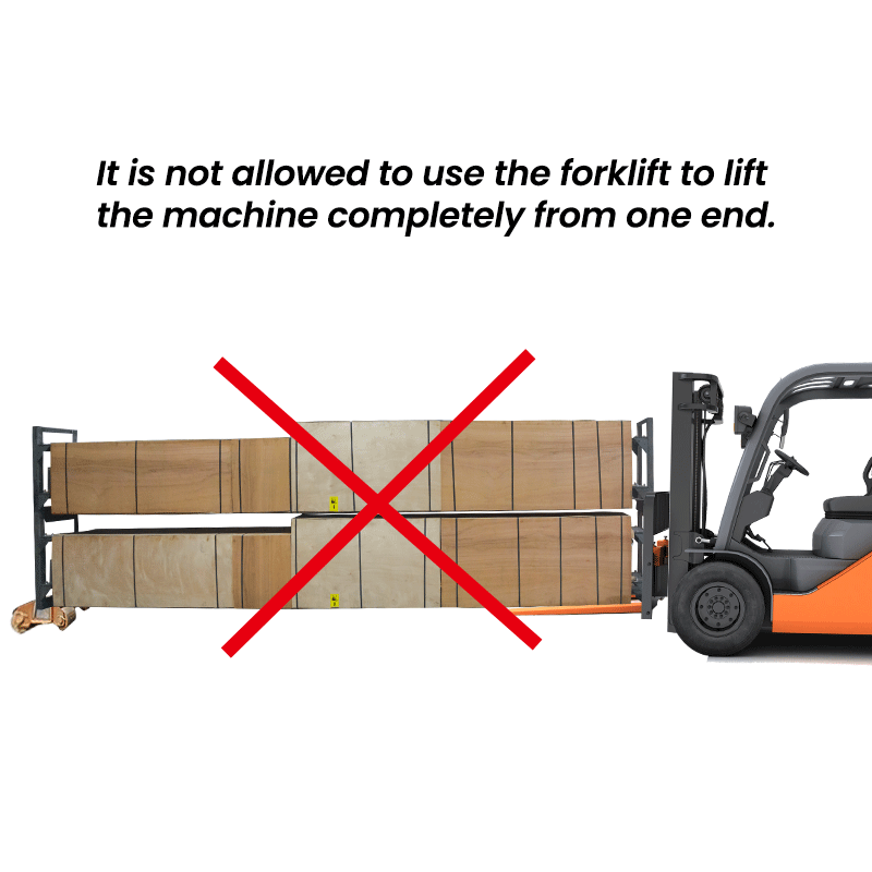 Wrong operation: It is not allowed to use the forklift to lift the machine completely from one end, which will easily cause the machine to be deformation.